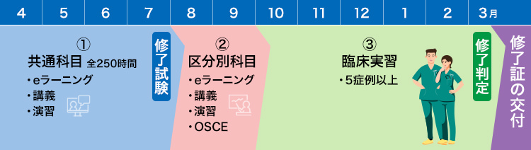 医療安全、臨床推論、フィジカルアセスメント、薬理学など特定行為実施に必要な基礎知識をeラーニング、講義、演習で学びます。