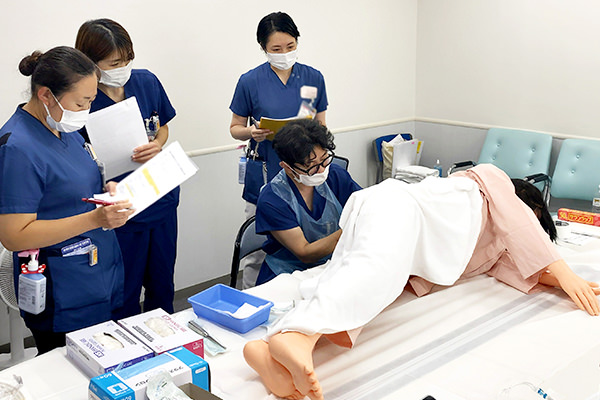 - 臨床実習は、院内講師(臨床専門医等)の他に、診療看護師、大学教授ら外部講師の協力を得て、指導を受けます。