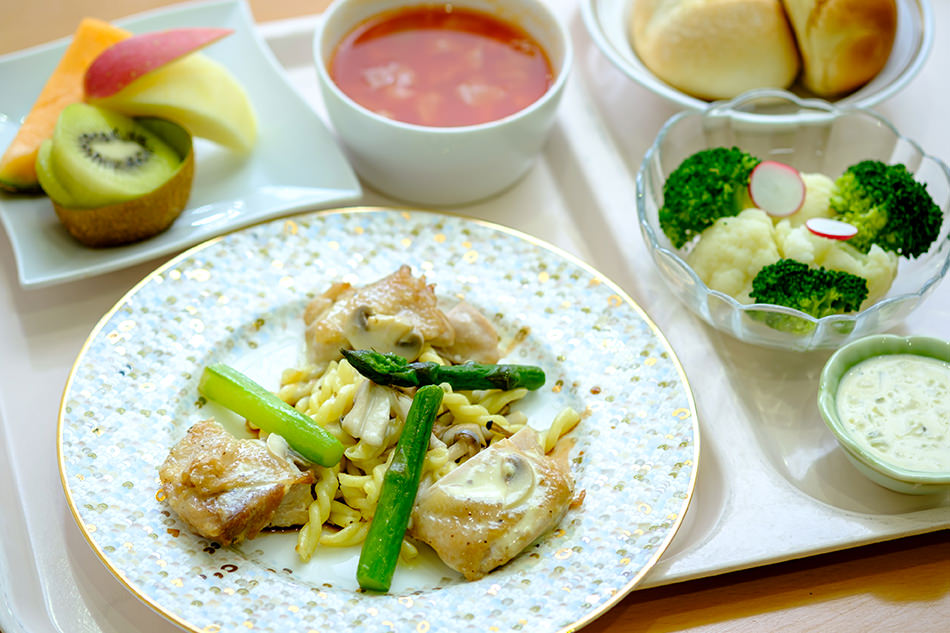 見た目にも美しく、食べても美味しいお食事を召し上がっていただき、素敵な入院ライフを楽しんでください。なお、食物アレルギーをお持ちの方には産後食ではなく、アレルギー対応食を提供させていただいております。