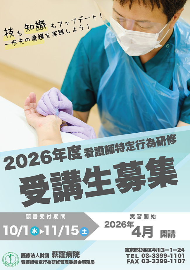 荻窪病院では、2026年度の看護師特定行為研修受講生を募集いたします。